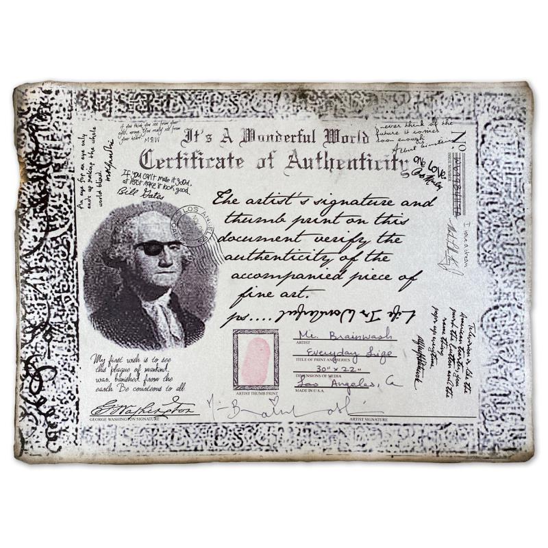 "Everyday Life" is a mixed media original on deckle edge paper by Mr Brainwash, Hand Signed and thumbprinted inverso by the artist.This piece comes framed. Includes Certificate of Authenticity. Measures approx. 34" x 26" (frame), 30" x 22" (image).This item requires special handling and may have longer than usual turnaround.