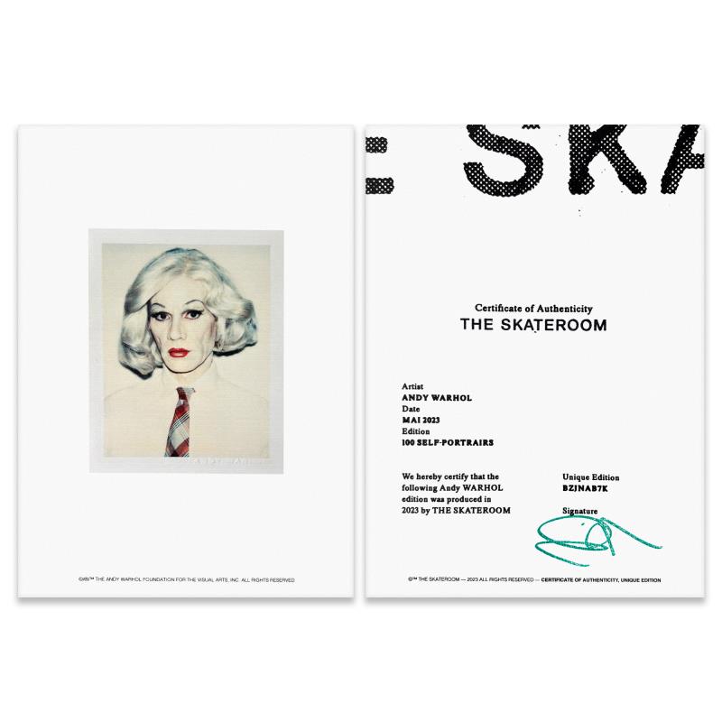 Self-Portrait (Grey) is a one-of-a-kind unique edition skateboard by Andy Warhol (1928-1987), bearing the plate signature inverso of the artist. This piece comes custom framed. This piece is from a unique edition in partnership with The Brant Foundation. Each edition within the collection has its own color hue and unique Andy Warhol polaroid photograph printed on the board inverso. This piece comes custom framed. Includes Certificate of Authenticity. Measures approx. 38" x 14.5" (frame), 32" x 8.5" (skateboard).This item requires special handling and may have longer than usual turnaround.