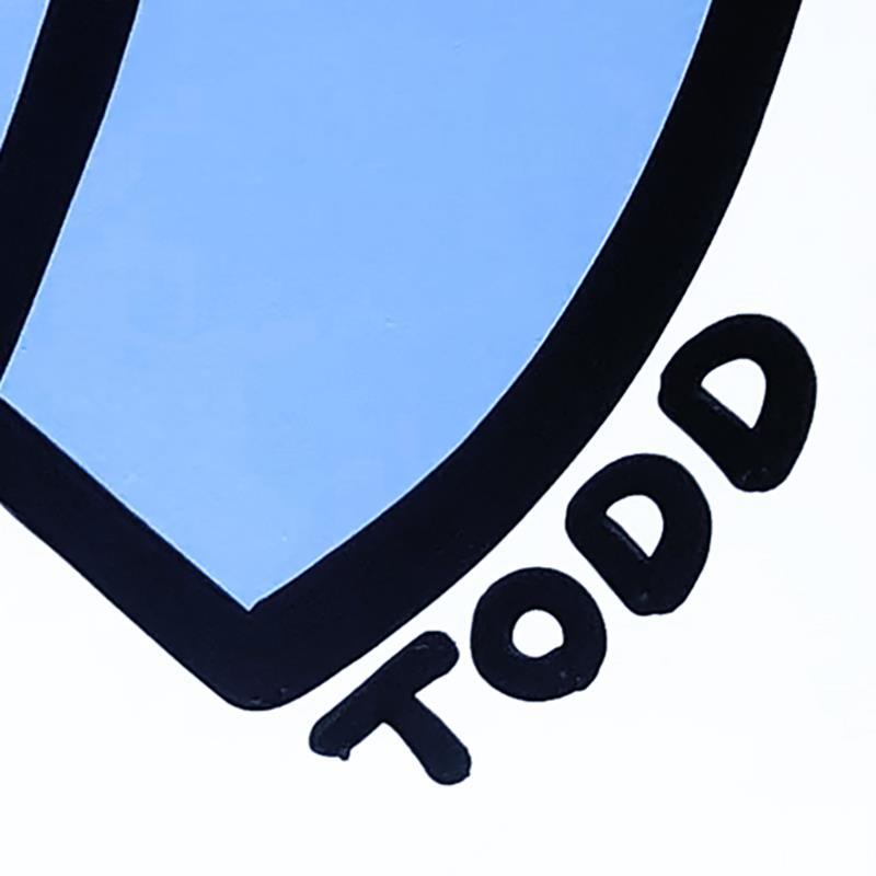 Although Todd Goldman began painting in high school, he didn’t pursue his artistic interests until years later. Instead, he earned a degree in accounting from the University of Florida and worked as a CPA for six years followed by a handful of odd jobs. Frustrated with the state of things, Goldman began to doodle just as he had when he was younger, “making fun of the world through his stupid doodles.” After six months, Goldman had collected enough designs to start david & goliath, a t-shirt company based on his doodles, in 2000.