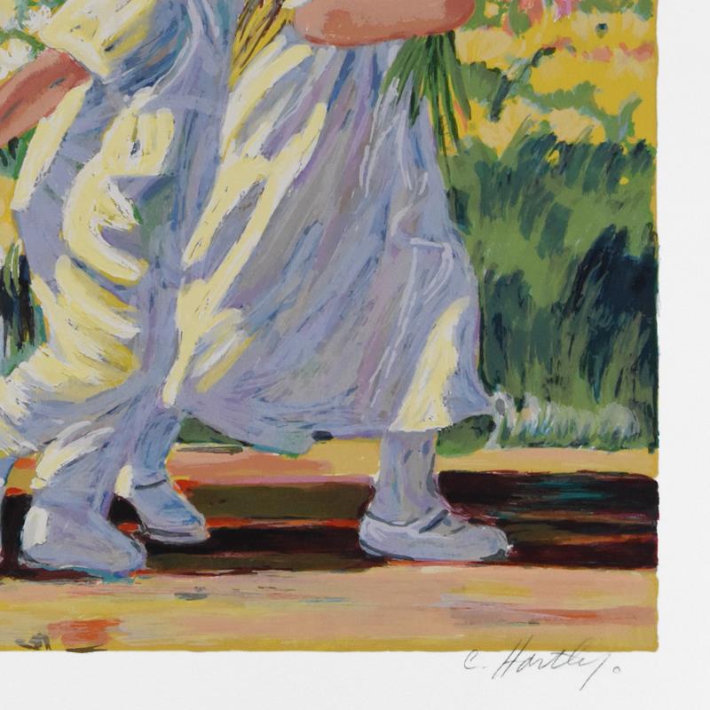 When Corinne Hartley left the Chouinard Art Institute in 1944 after two years of intensive study she was confident about drawing the figure and had a portfolio to prove it. An opportunity soon opened for her to work in what she calls "the high powered field of commercial art – fashion illustration." She immediately took the job, and for the next thirty years continued to utilize her drawing skills as a fashion illustrator and, in off hours, as a painter. Her main subjects were women and children. When photography began to inch its way into fashion advertising, she made the transition by exhibiting her work at local galleries gradually establishing a solid career as a fine artist. Immensely popular with the public, her life-like portraits were widely coveted, and she began to feel the pressures of keeping up with her growing number of portrait commissions where children and adults continued to be her subjects. Over the years Hartley has felt equally at home working in several mediums – charcoal pencil, watercolor, and oil. In the 1990s she began exploring sculpture as well, energetically making it a capstone to a career that spans more than sixty years.