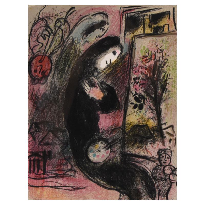 Marc Chagall (1887-1985) had a poetic, figurative style that made him one of the most popular modern artists, while his long life and varied output made him one of the most internationally recognized. While many of his peers pursued ambitious experiments that led often to abstraction, Chagall's distinction lies in his steady faith in the power of figurative art, one that he maintained despite absorbing ideas from Fauvism and Cubism. Born in Russia, Chagall moved to France in 1910 and became a prominent figure within the so-called Ecole de Paris. Later he spent time in the United States and the Middle East, travels which reaffirmed his self-image as an archetypal "wandering Jew."