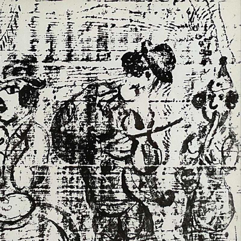 "Les Musiciens Vagabonds" is a lithograph on paper by Marc Chagall (1887-1985). This piece comes custom framed. Includes Letter of Authenticity. Measures approx. 17" x 20" (frame), 9" x 12.5" (image).