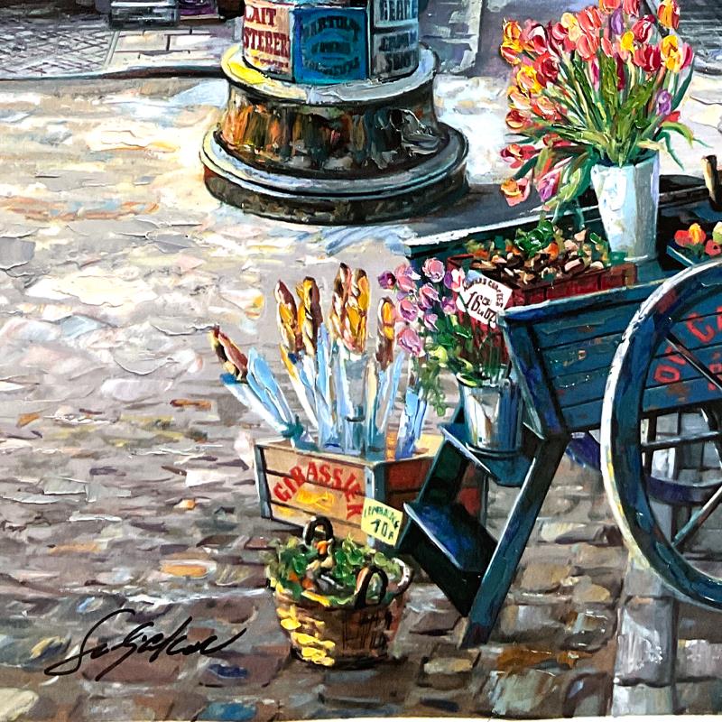"Passage Le Julien" is a hand embellished limited edition publisher's proof on stretched canvas by Vadik Suljakov, numbered inverso 1/5 and hand signed by the artist. Includes Letter of Authenticity. Measures approx. 18" x 24" (image). There may be minor wear on the corners and edges.