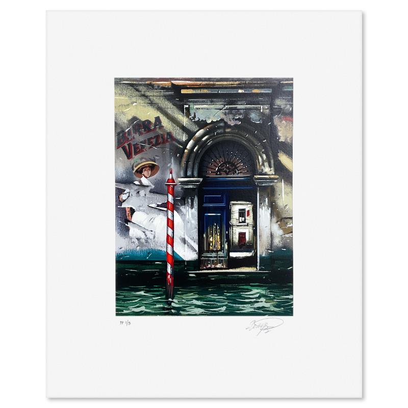 "Venezia" is a limited edition printers proof serigraph on paper by Thomas Pradzynski (1951-2007), numbered 1/3 and hand signed by the artist. Includes Letter of Authenticity. Measures approx. 17" x 14" (border), 10.5" x 8" (image).