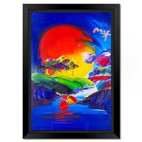 "Friends" is a one-of-a-kind mixed media on paper, hand signed by Peter Max. The piece comes custom framed with a backside cutout to display Peter Max Studio registration number 255933 certifying authenticity. Measures approximately 36" x 48" (frame), 24" x 36" (image). This item requires special handling and may have a longer than usual turnaround.