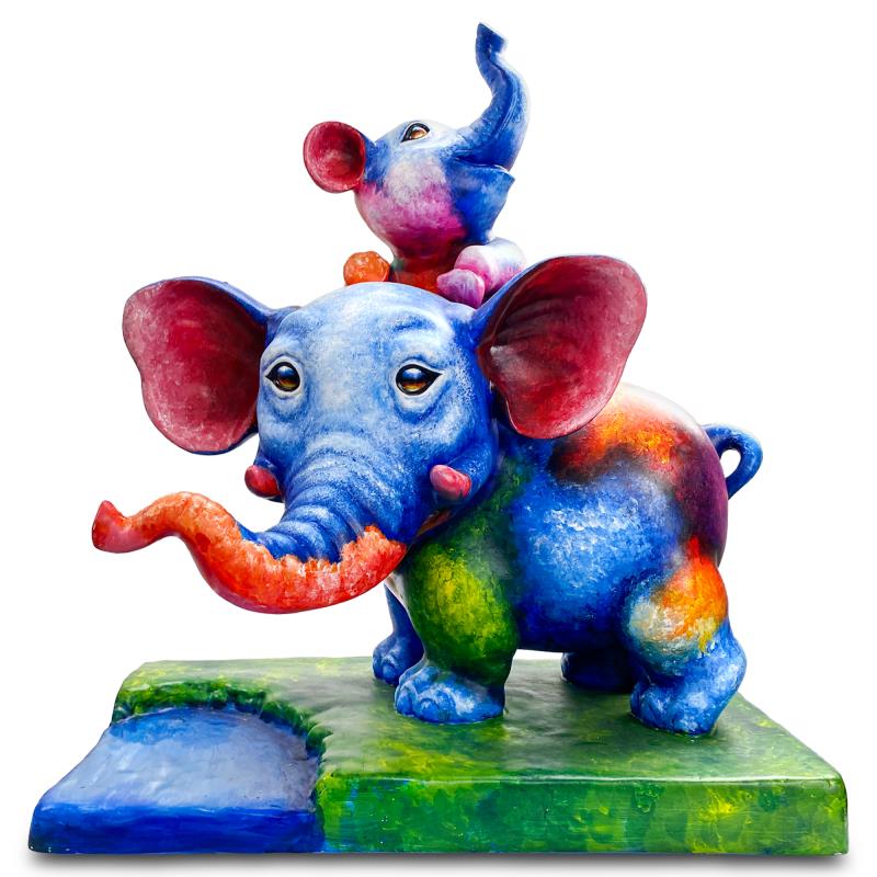 "Mother Love" is a hand painted limited edition, dimensional art, resin sculpture by Wang. This piece is numbered AP 6 and hand signed in verso. Includes Letter of Authenticity. Measures approx. 25" x 22.5" x 13.5 (base with sculpture).