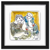 This is a hand painted ceramic plate by Yuroz, hand signed by the artist. This piece comes custom framed floated on linen. Includes Letter of Authenticity. Measures approx. 13.5" x 13.5" (frame), 7.5" (diameter). This item requires special handling and may have a longer than usual turnaround.