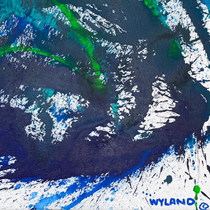 "Untitled Abstract" is an original watercolor painting on paper by Wyland, hand signed by the artist. This piece comes custom framed. Includes Letter of Authenticity. Measures approx. 34" x 48" (frame), 26" x 40" (image). This item requires special handling and may have a longer than usual turnaround.