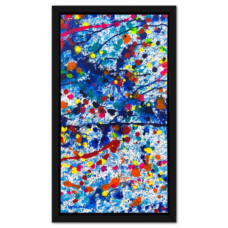 "Untitled Abstract" is an original acrylic painting on canvas by Wyland, hand signed by the artist. This piece comes custom framed. Includes Letter of Authenticity. Measures approx. 35.5" x 19.5" (frame), 34" x 18" (image).