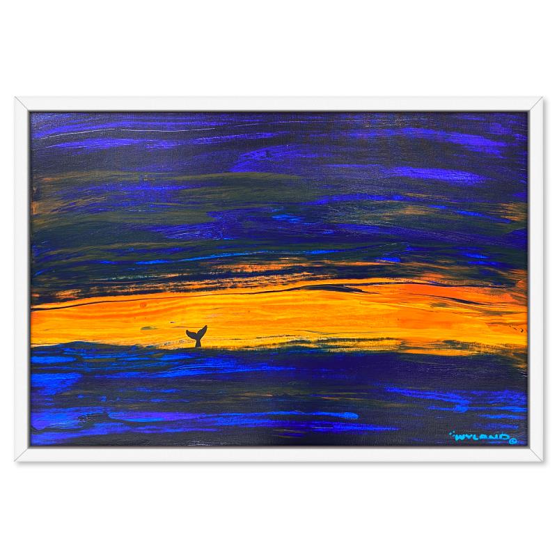"Whale Tail" is an original acrylic painting on canvas by Wyland, hand signed by the artist. This piece comes custom framed. Includes Letter of Authenticity. Measures approx. 29.5" x 41.5" (frame), 28" x 40" (image). This item requires special handling and may have a longer than usual turnaround.