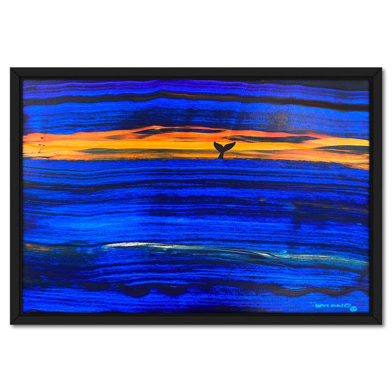 "Whale Tail" is an original acrylic painting on canvas by Wyland, hand signed by the artist. This piece comes custom framed. Includes Letter of Authenticity. Measures approx. 29.5" x 41.5" (frame), 28" x 40" (image). This item requires special handling and may have a longer than usual turnaround.