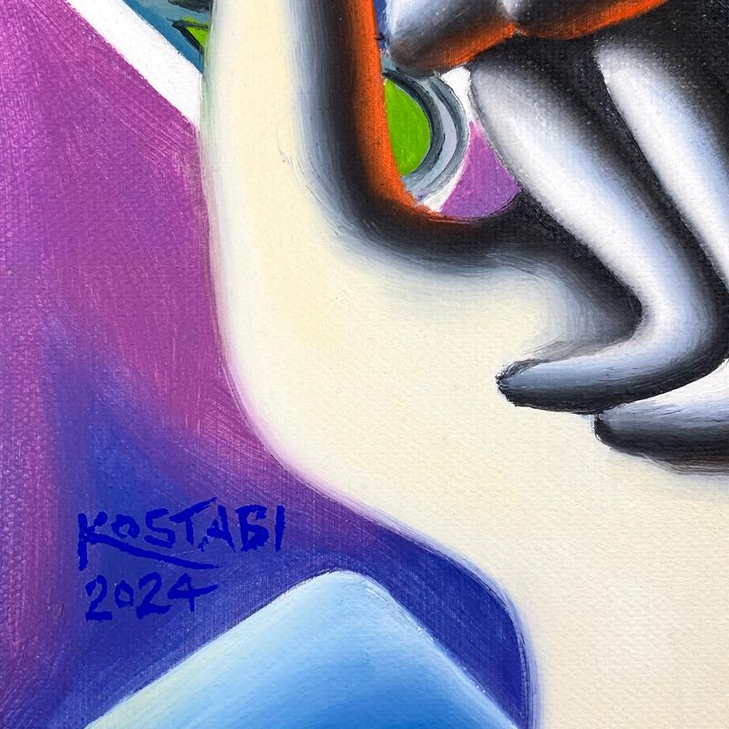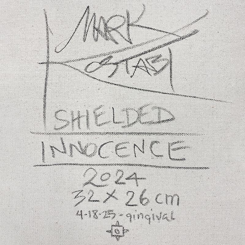 "Sheiled Innocence" is an original oil painting on canvas by Mark Kostabi, hand signed by the artist. This piece comes custom framed. Includes Certificate of Authenticity. Measures approx. 22.5" x 20" (frame), 12.5" x 10" (image).