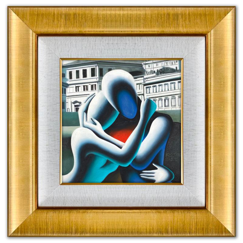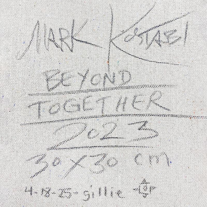 "Beyond Togther" is an original oil painting on canvas by Mark Kostabi, hand signed by the artist. This piece comes custom framed. Includes Certificate of Authenticity. Measures approx. 21.5" x 21.5" (frame), 11.5" x 11.5" (image).