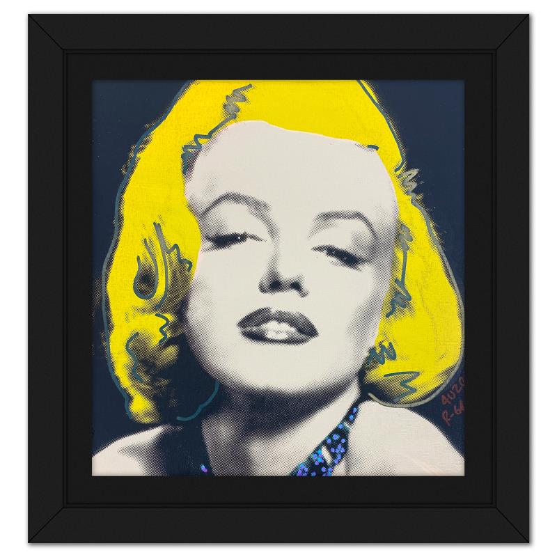"Marilyn Seduction" is a one-of-a-kind hand-pulled mixed media silkscreen on canvas by Ringo (Daniel Funes) - protege of Andy Warhol's apprentice, Steve Kaufman.This piece is hand signed by the artist. This piece comes custom framed. Includes Letter of Authenticity. Measures approx. 17.5" x 17.5" (frame), 14.5" x 14.5" (image). This item requires special handling and may have a longer than usual turnaround.