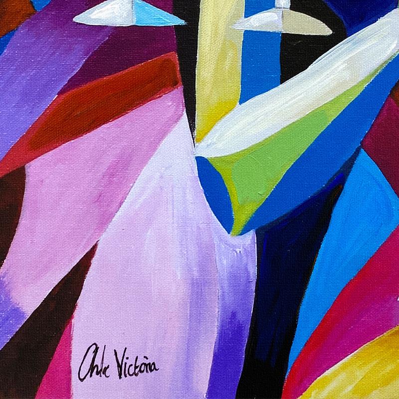 "Glass Reflection" is a one-of-a-kind mixed media overpaint on canvas by Chloe Victoria, hand signed by the artist. This piece comes custom framed. Includes Letter of Authenticity. Measures approx. 23" x 31" (frame) 20" x 28" (image). This item requires special handling and may have a longer than usual turnaround.