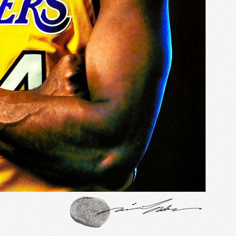 "Kobe Bryant 24" is a giclee on paper by Michael Muller, bearing the authorized signature of the artist. Includes Letter of Authenticity. Measures approx. 14" x 11" (image).