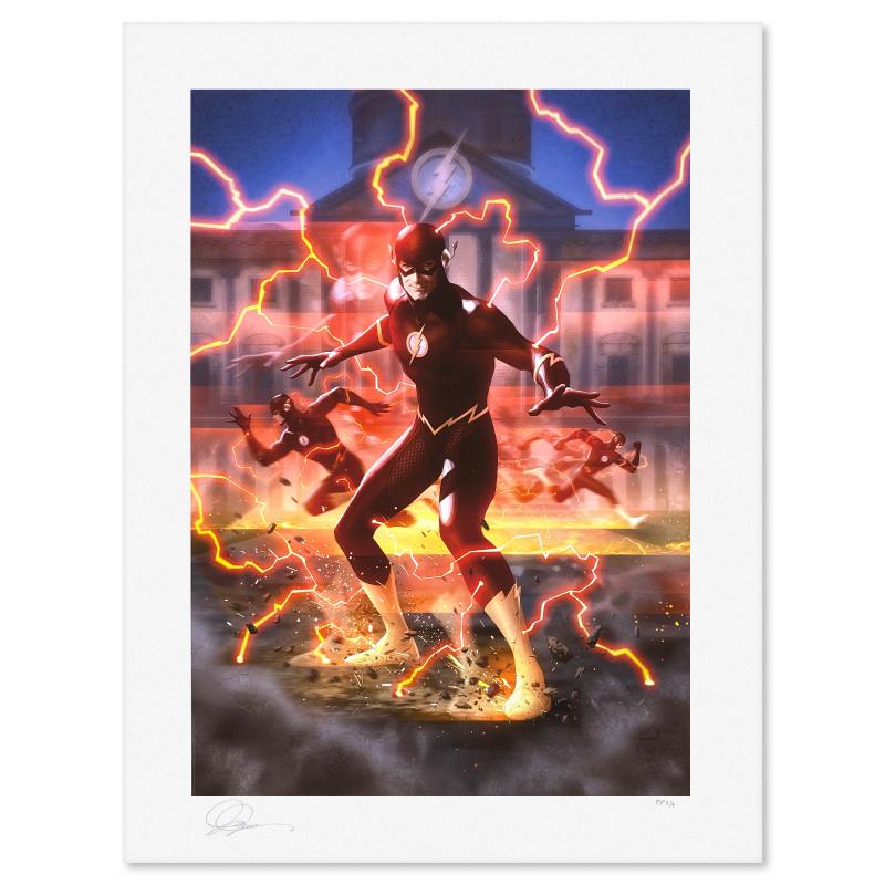 "The Flash" is a limited edition giclee on paper from DC Comics and Alex Garner, PP numbered 3/4 and bearing the authorized signature of the artist. Includes Letter of Authenticity. Measures approx. 24" x 18" (border) 20" x 14" (image).