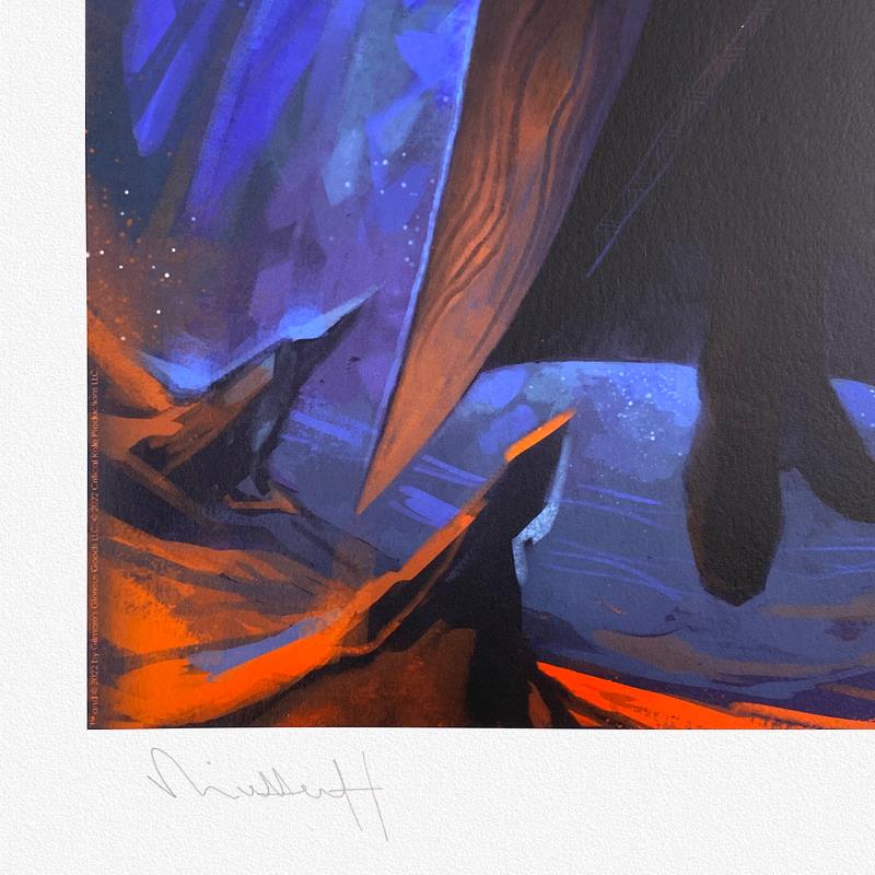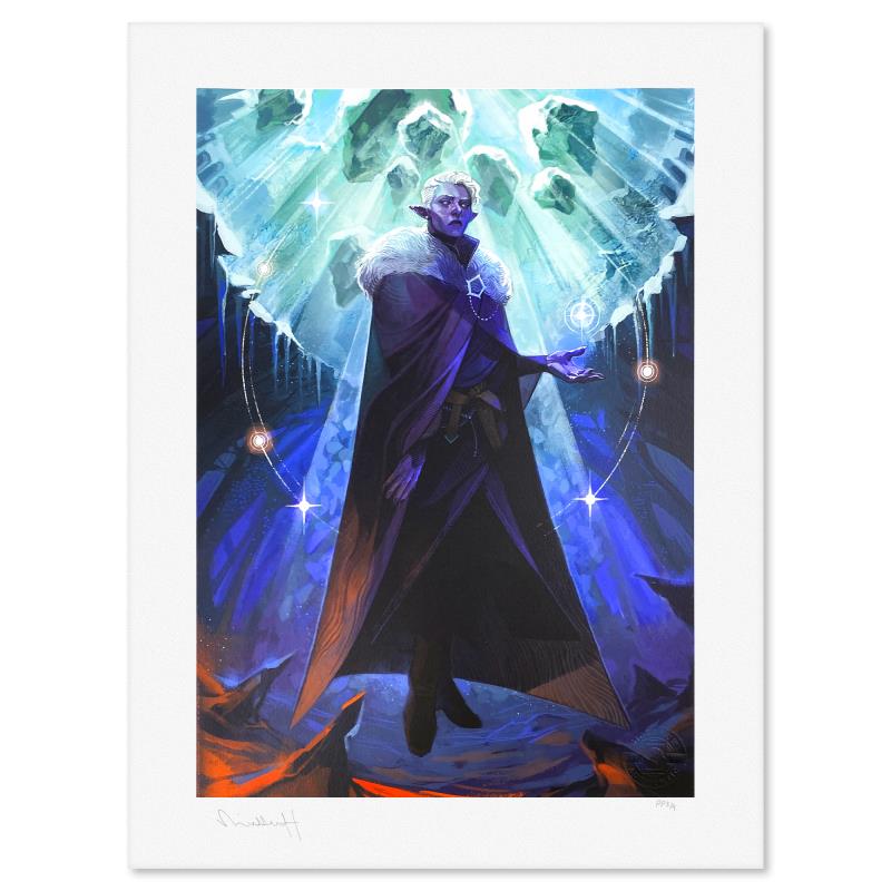 "Essek Thelyss" is a limited edition giclee on paper by Minttu Hynninen, PP numbered 3/4 and bearing the authorized signature of the artist. Includes Letter of Authenticity. Measures approx. 24" x 18" (border) 20" x 14" (image).