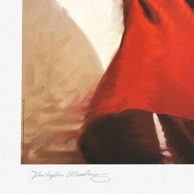 "Someone To Believe In" is a limited edition giclee on paper from DC Comics and Kristopher Meadows, PP numbered 3/4 and bearing the authorized signature of the artist. Includes Letter of Authenticity. Measures approx. 25.5" x 18" (border) 21.5" x 14" (image).
