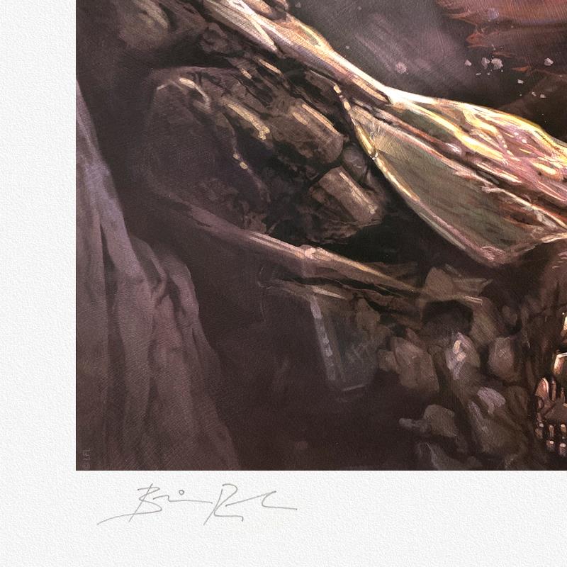 "Darth Maul" is a limited edition giclee on paper from Star Wars and Brian Rood, PP numbered 3/4 and bearing the authorized signature of the artist. Includes Letter of Authenticity. Measures approx. 18" x 24" (border) 14" x 20" (image).