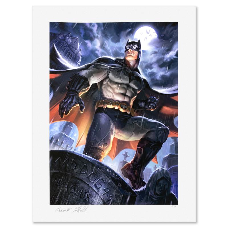 "Batman" is a limited edition giclee on paper from Marvel Comics, Alex Pascenko and Ian Pascenko, PP numbered 3/4 and bearing the authorized signature of the artist. Includes Letter of Authenticity. Measures approx. 24" x 18" (border) 20" x 14" (image).