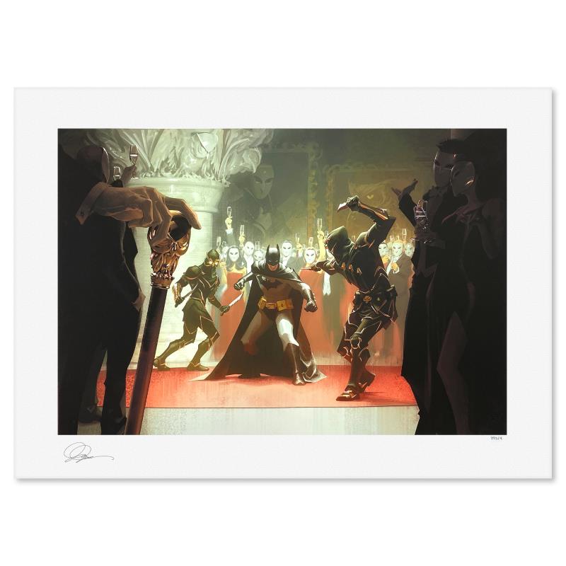 "Batman: The Court of Owls" is a limited edition giclee on paper from DC Comics and Alex Garner, PP numbered 3/4 and bearing the authorized signature of the artist. Includes Letter of Authenticity. Measures approx. 18" x 24" (border) 14" x 20" (image).