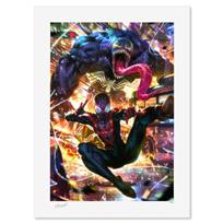 "Spider-Man vs Green Goblin" is a limited edition giclee on paper from Marvel Comics and Derrick Chew, PP numbered 3/4 and bearing the authorized signature of the artist. Includes Letter of Authenticity. Measures approx. 24" x 18" (border) 20" x 14" (image).