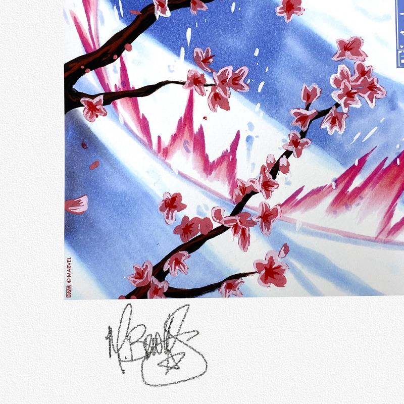 "Psylocke Demon Days: X-Men" is a limited edition giclee on paper from Marvel Comics and Mark Brooks, PP numbered 3/4 and bearing the authorized signature of the artist. Includes Letter of Authenticity. Measures approx. 24" x 18" (border) 20" x 14" (image).