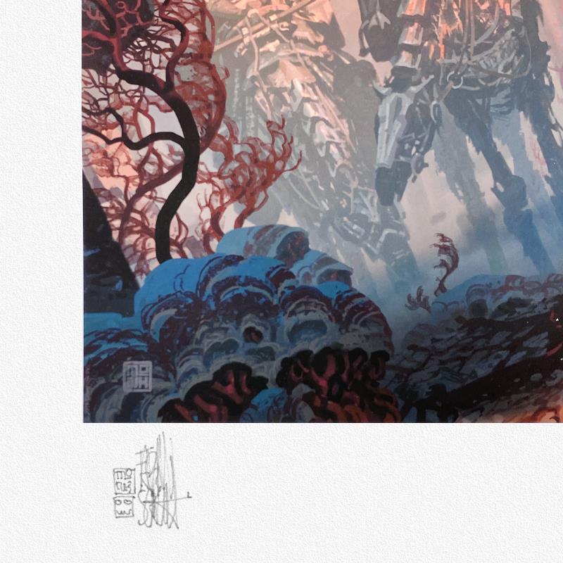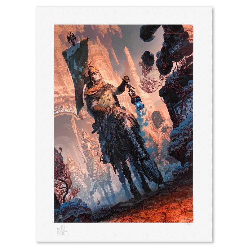 "Underworld Quest Knight Relic Ravlatch" is a limited edition giclee on paper by Fabian Schlaga, PP numbered 3/4 and bearing the authorized signature of the artist. Includes Letter of Authenticity. Measures approx. 24" x 18" (border) 20" x 14" (image).