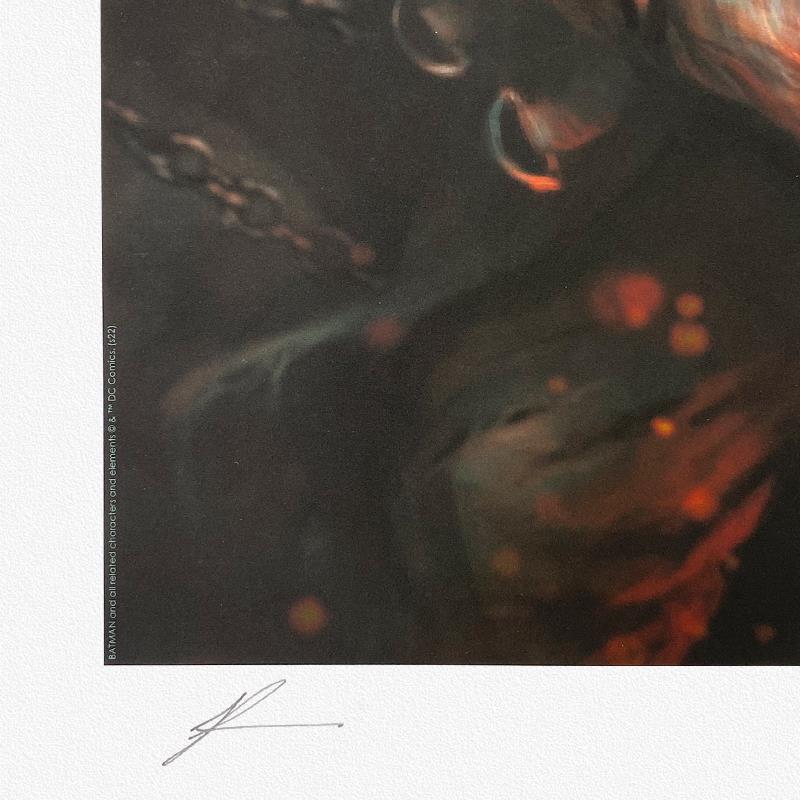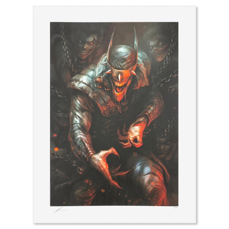 "Batman Who Laughs" is a limited edition giclee on paper from DC Comics and Richard Luong, PP numbered 3/4 and bearing the authorized signature of the artist. Includes Letter of Authenticity. Measures approx. 24" x 18" (border) 20" x 14" (image).