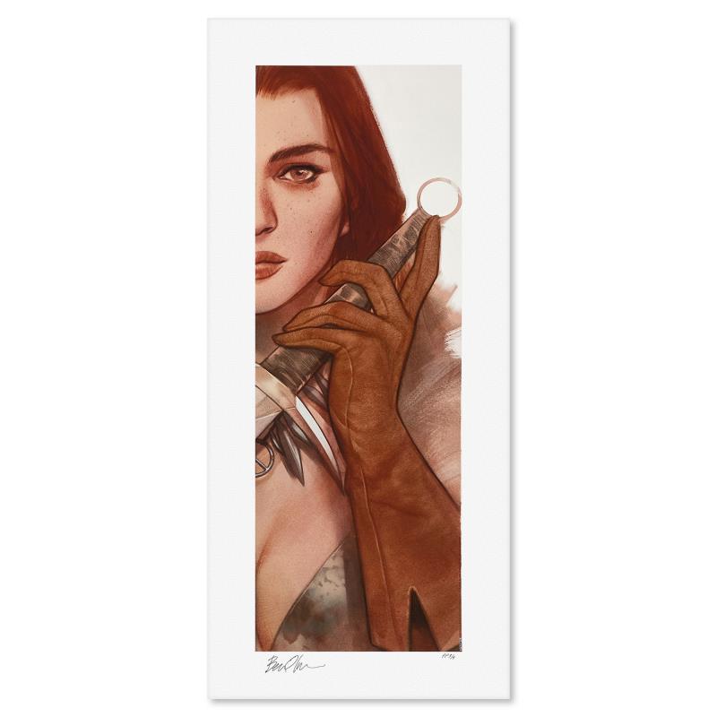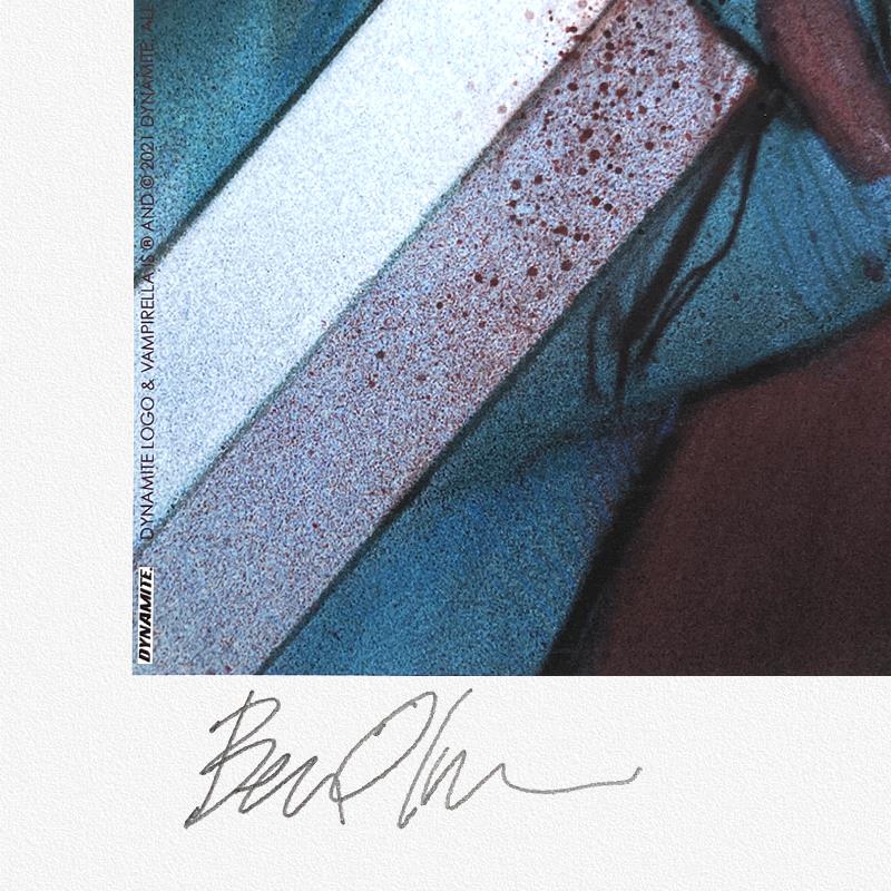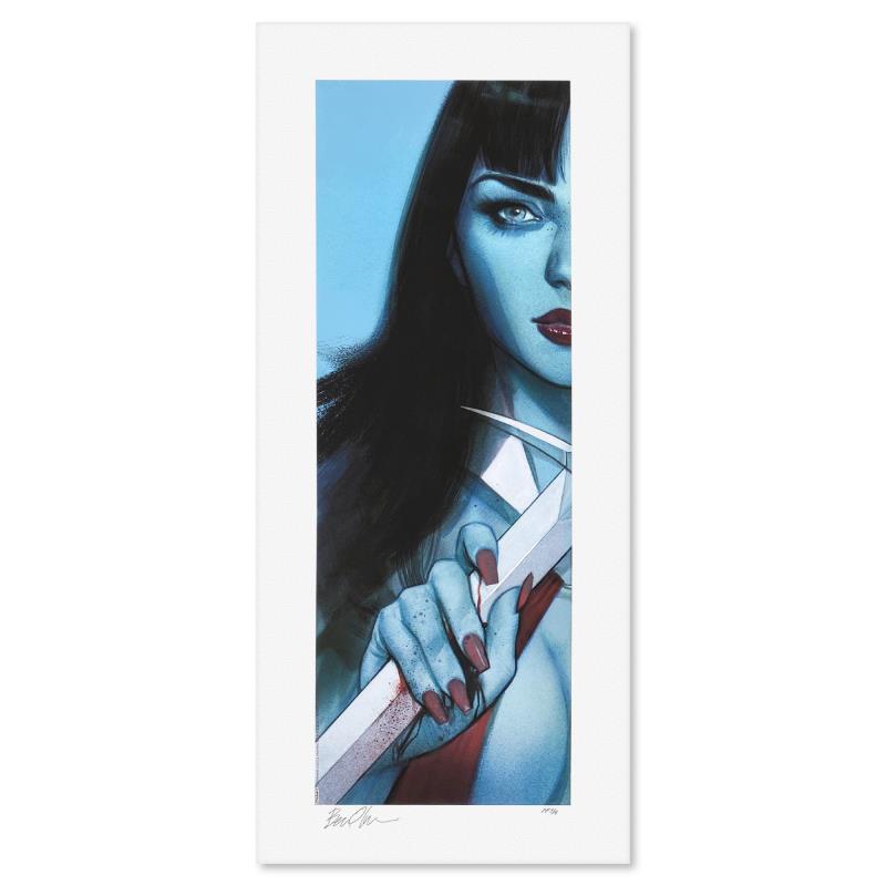 "Vampirella & Red Sonja" is a 2 piece limited edition set giclee on paper by Ben Oliver, PP numbered 3/4 and bearing the authorized signature of the artist. Includes Letter of Authenticity. Measures approx. 28" x 12" (border) 24" x 8" (image).