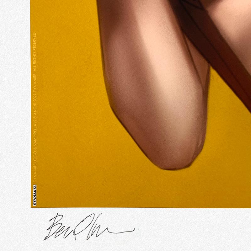 "Vengeance of Vampirella" is a limited edition giclee on paper by Ben Oliver, PP numbered 3/4 and bearing the authorized signature of the artist. Includes Letter of Authenticity. Measures approx. 24" x 18" (border) 20" x 14" (image).