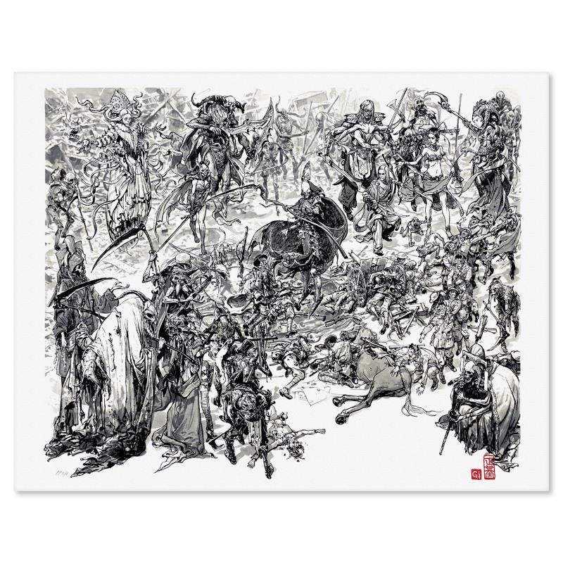 Korean artist Kim Jung Gi was born in 1975 in the town of Goyang-Si, located in the province of Kyongki-Do South Korea. At 19, this budding artist enrolled at a Fine Arts School, majoring in Art and Design. He attended Dong-Eui University in Busan for three years and did his two years in the South Korean army as a part of the Special Forces Unit. Here, he was able to memorize the array of different weapons and vehicles. Kim's most notable creative asset is his memory, something he has developed over a number of years. His ability to render extremely complicated scenes near-perfectly from memory, without the aid of references, has stretched the boundaries of what many artists believed was possible. He's worked in various industries – movies, music, and government. Kim put together a feature exhibition in Cheongwadae the Republic of Korea's president's official workplace and residence. He was also hired by Korean Hip-Hop artist Drunken Tiger to create the album cover.