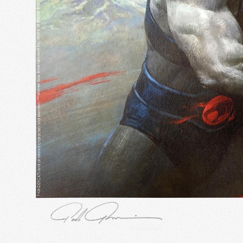 "ThunderCats, Ho!" is a limited edition giclee on paper by Paolo Rivera, PP numbered 3/4 and bearing the authorized signature of the artist. Includes Letter of Authenticity. Measures approx. 24" x 18" (border) 20" x 14" (image).