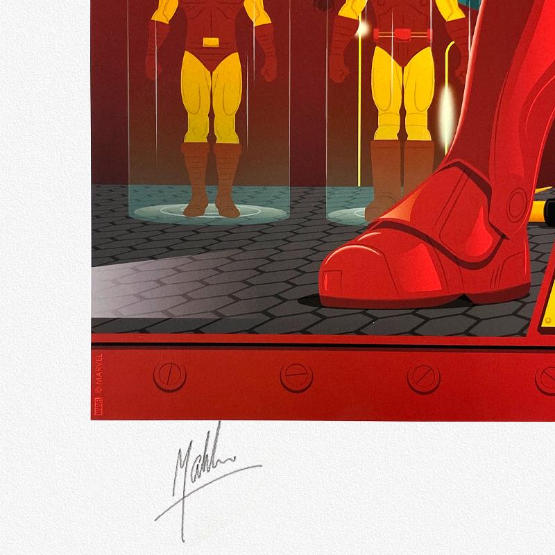 "Iron Man" is a limited edition giclee on paper from Marvel Comics and Mike Mahle, PP numbered 3/4 and bearing the authorized signature of the artist. Includes Letter of Authenticity. Measures approx. 24" x 18" (border) 20" x 14" (image).