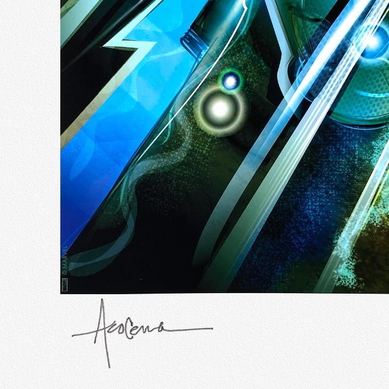 "Fantastic Four: Hand of Doom" is a limited edition giclee on paper by Orlando Arocena, PP numbered 3/4 and bearing the authorized signature of the artist. Includes Letter of Authenticity. Measures approx. 24" x 18" (border) 20" x 14" (image).