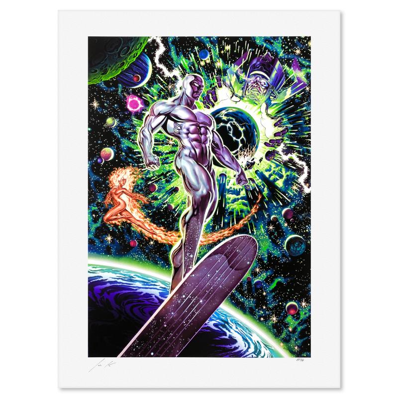 "Heralds of Galactus" is a limited edition giclee on paper by John Keaveney, PP numbered 3/4 and bearing the authorized signature of the artist. Includes Letter of Authenticity. Measures approx. 24" x 18" (border) 20" x 14" (image).