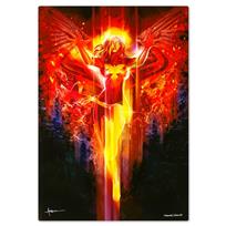 Canvas works are typically framed without plexi so that the vibrancy and interaction with light can be best appreciated.