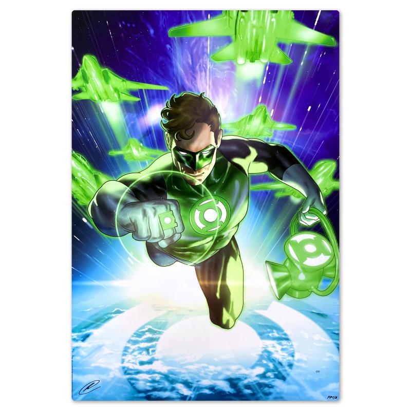 "The Green Lantern: Hal Jordan" is a limited edition giclee on aluminum from DC Comics and Taurin Clarke, PP numbered 1/2 and bearing the authorized signature of the artist. Includes Letter of Authenticity. Measures approx. 24" x 16" (image).