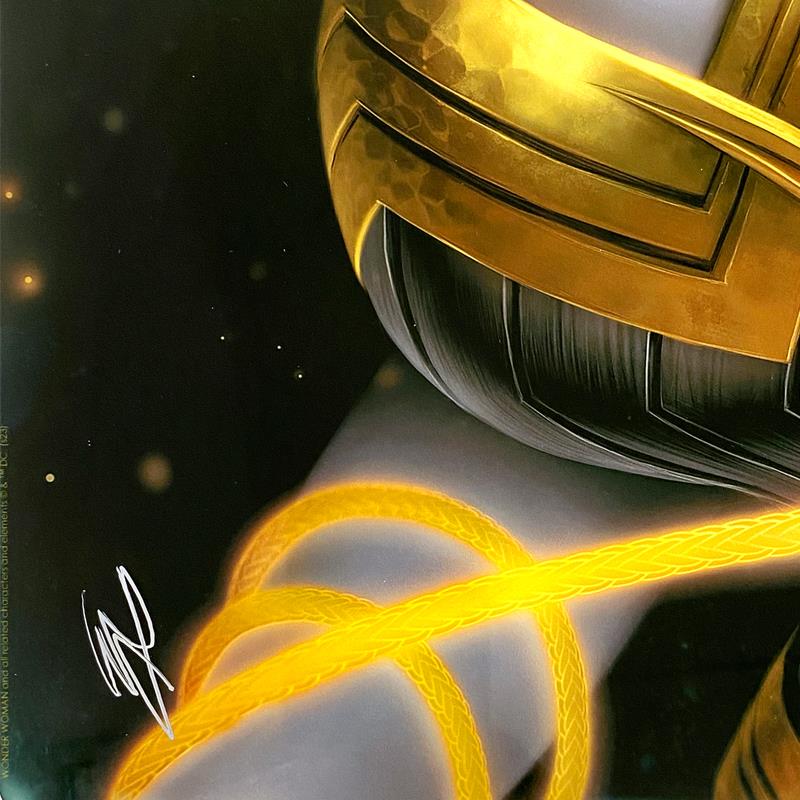 "Wonder Woman: Black & Gold" is a limited edition giclee on aluminum from DC Comics and Warren Louw, PP numbered 1/2 and bearing the authorized signature of the artist. Includes Letter of Authenticity. Measures approx. 24" x 16" (image).