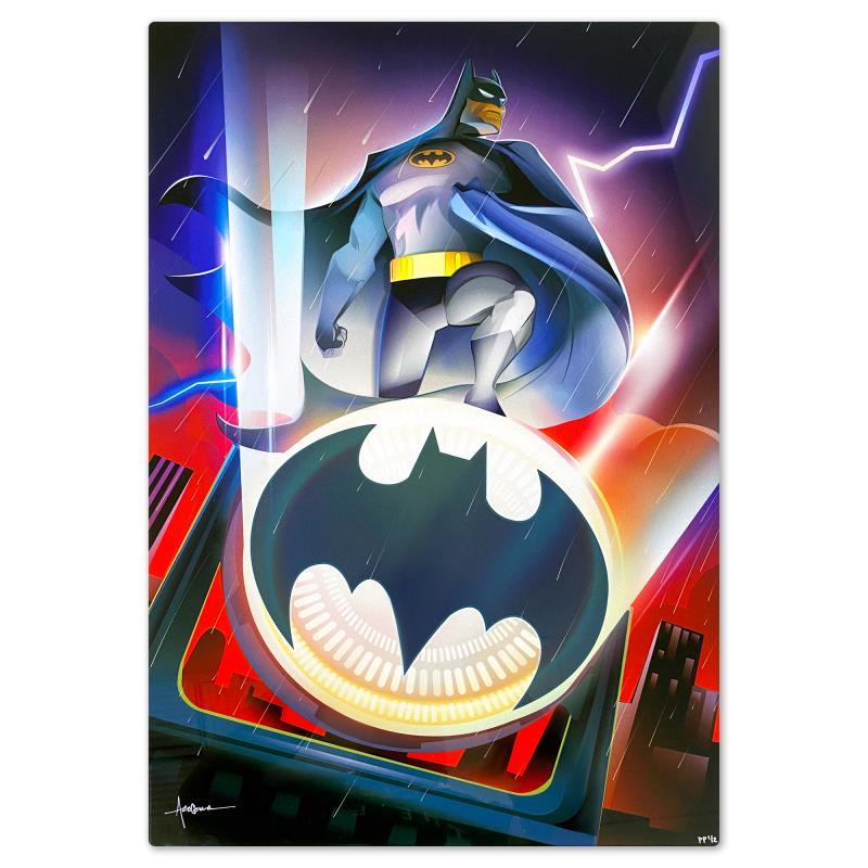 "Batman: The Animated Series 30th Anniversary" is a limited edition giclee on aluminum from DC Comics and Orlando Arocena, PP numbered 1/2 and bearing the authorized signature of the artist. Includes Letter of Authenticity. Measures approx. 24" x 16" (image).