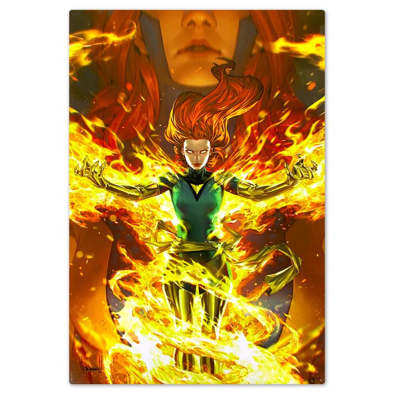 "Jean Grey: Phoenix Transformation" is a limited edition giclee on aluminum from Marvel Comics and Kael Ngu, PP numbered 1/2 and bearing the authorized signature of the artist. Includes Letter of Authenticity. Measures approx. 24" x 16" (image).