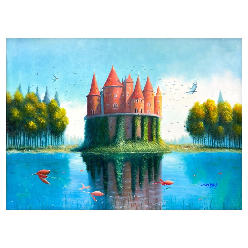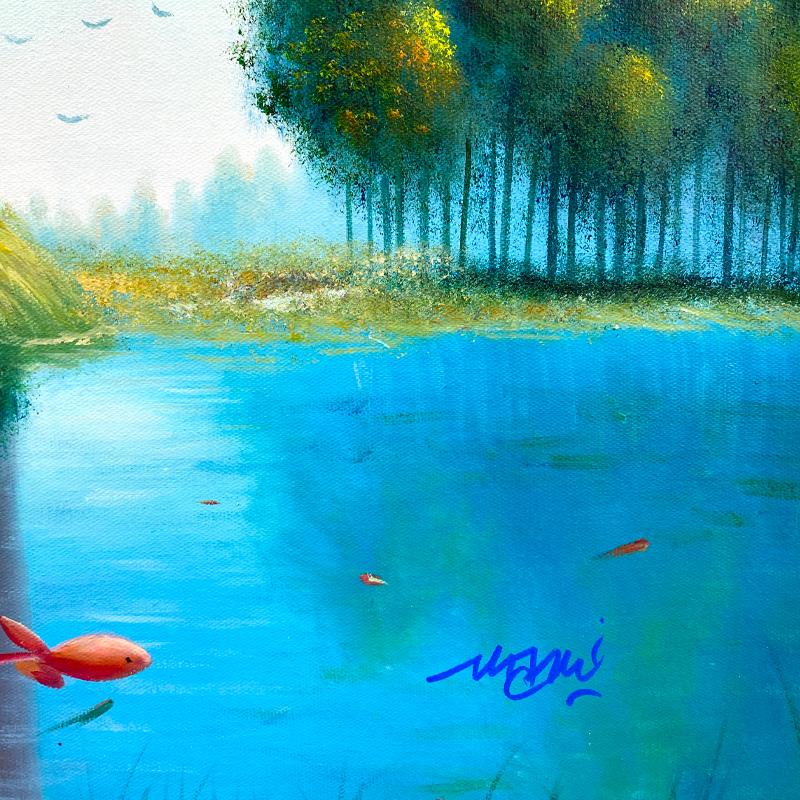 This is an original acrylic painting on canvas by Mani, hand signed by the artist. Includes Letter of Authenticity. Measures approx. 24" x 34" (image).