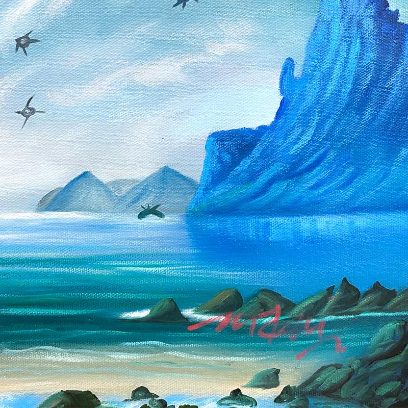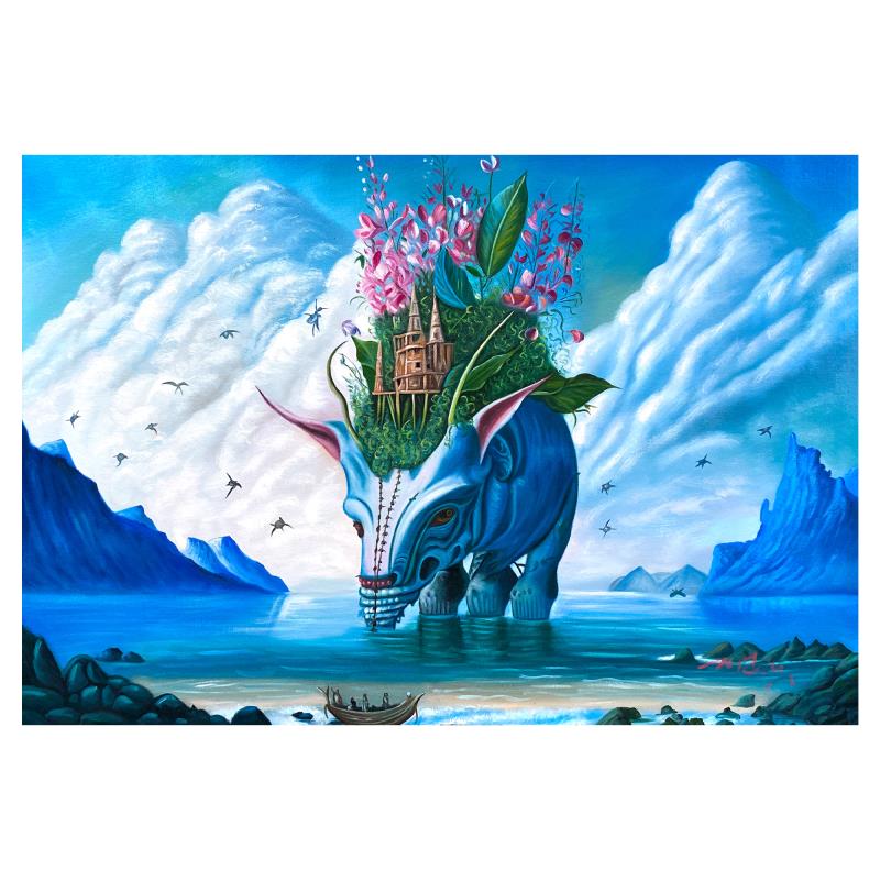 This is an original acrylic painting on canvas by Mani, hand signed by the artist. Includes Letter of Authenticity. Measures approx. 20" x 30" (image).