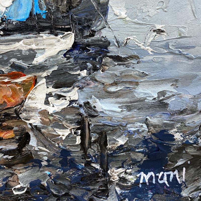 This is an original acrylic painting on canvas by Mani, hand signed by the artist. Includes Letter of Authenticity. Measures approx. 20" x 15" (image).