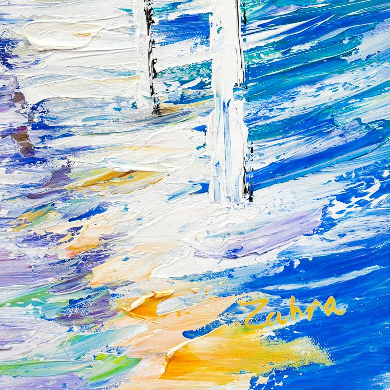 This is an original acrylic painting on canvas by Zahra, hand signed by the artist. Includes Letter of Authenticity. Measures approx. 32" x 24" (image).
