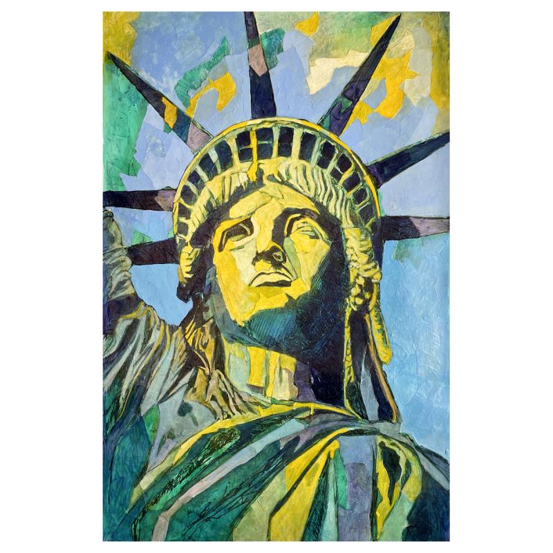 "Liberty Hope" is an original painting, acrylic on canvas, by Wolfson. Hand signed by the artist, it is accompanied by a letter of authenticity. Measures approximately 34" x 22 (image).