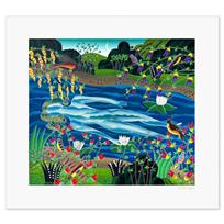 "St. Lucia (Caribbean Daydreams)" is a limited edition serigraph on paper by Thomas Mcknight, numbered and hand signed by the artist. Includes Letter of Authenticity. Measures approx. 21" x 23" (border), 16" x 18" (image).
