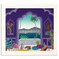 "Villa Flora" is a limited edition serigraph on paper by Thomas Mcknight, numbered and hand signed by the artist. Includes Letter of Authenticity. Measures approx. 39" x 43" (border), 34" x 38" (image).