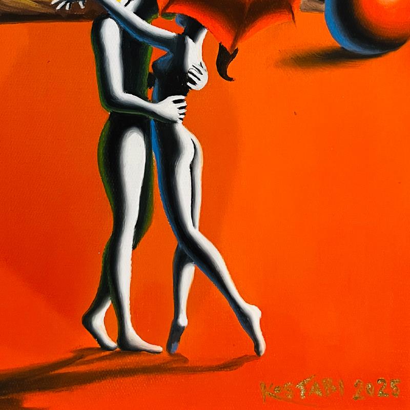 This is an original oil painting on canvas by Mark Kostabi, hand signed by the artist. This piece comes custom framed. Includes Certificate of Authenticity. Measures approx. 22" x 20" (frame), 12" x 10" (image). This item requires special handling and may have a longer than usual turnaround.